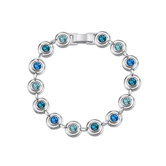 Luminous Tides is a reflection of light in motion, inspired by the shifting blues of tropical water and the way gold catches the sun at its surface.