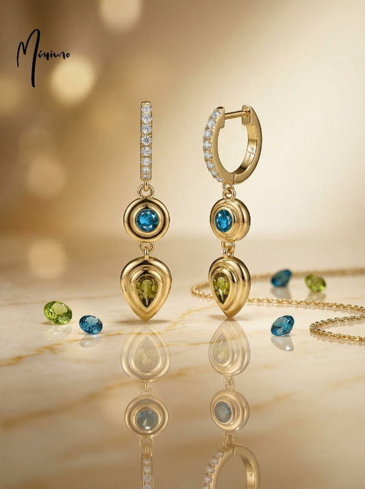 From soft, translucent tones to deeper ocean hues, each piece is designed to move with you, revealing new dimensions of color and glow with every turn. Sculptural gold frames luminous stones in a collection that feels fluid, radiant, and quietly powerful.