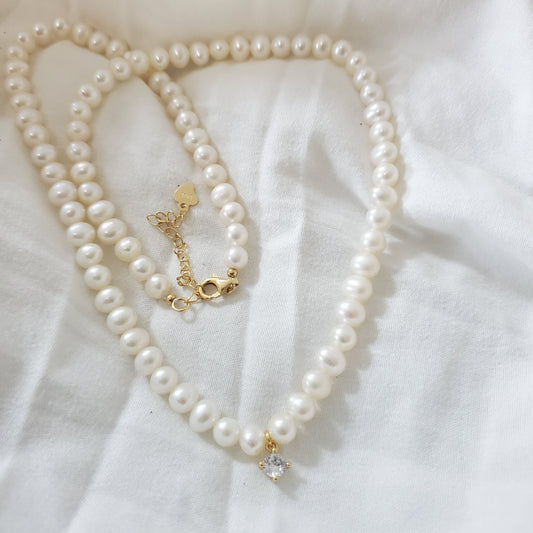 Sold outPearl Necklace with Cubic CZ