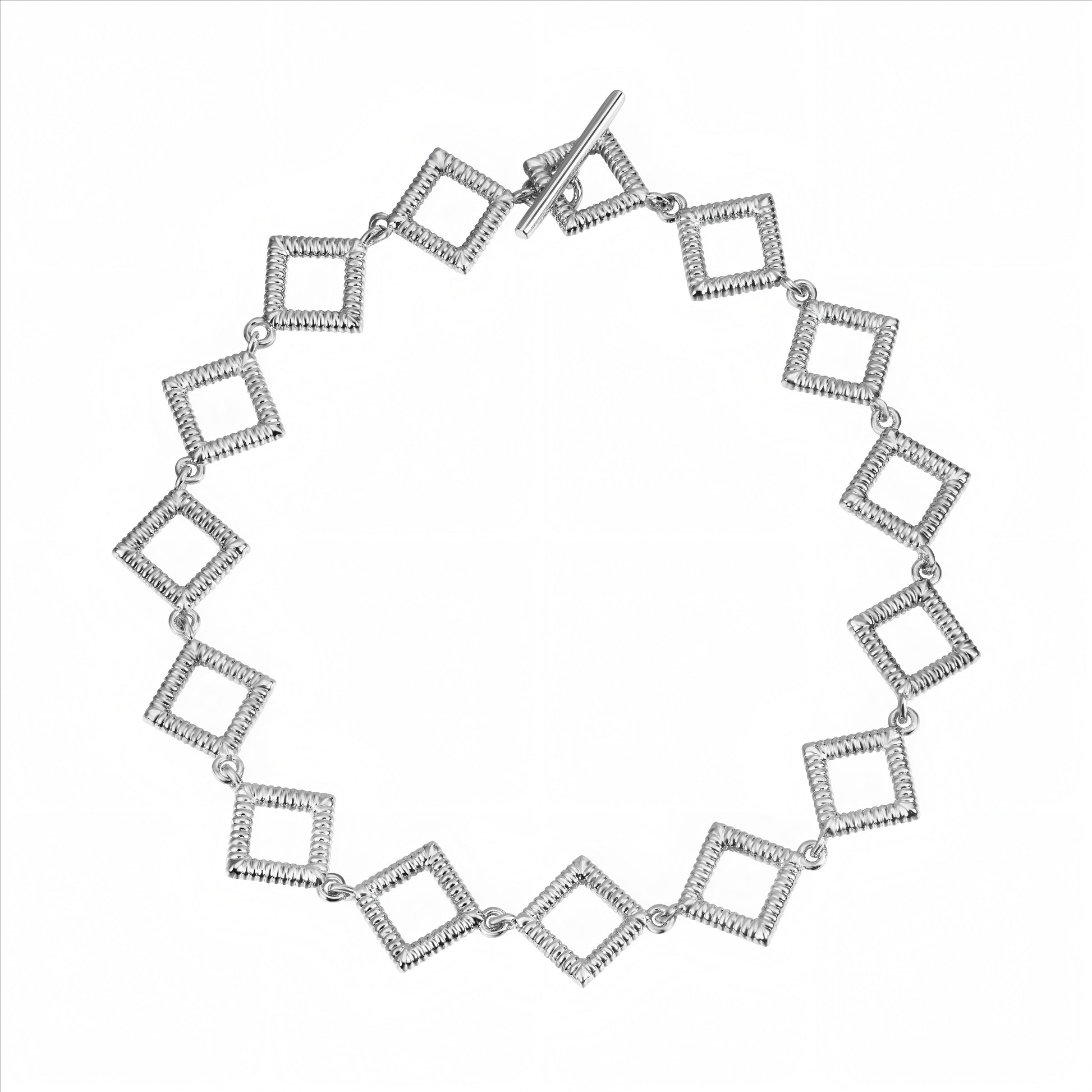 The perfect everyday icon. A continuous line of diamond-shaped links creates a sleek yet textured bracelet that moves with you. Available in 18k gold or rhodium plating, the Golden Axis Link Bracelet is a versatile piece that frames your style with effortless sophistication.